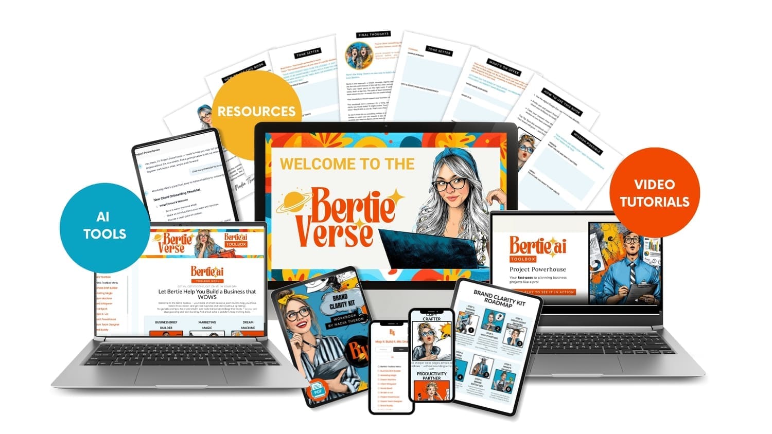 The BertieVerse is a universe of memberships, Sidekicks (AI helpers), live events, and resources — all designed to make building your business simpler, faster, and less lonely.